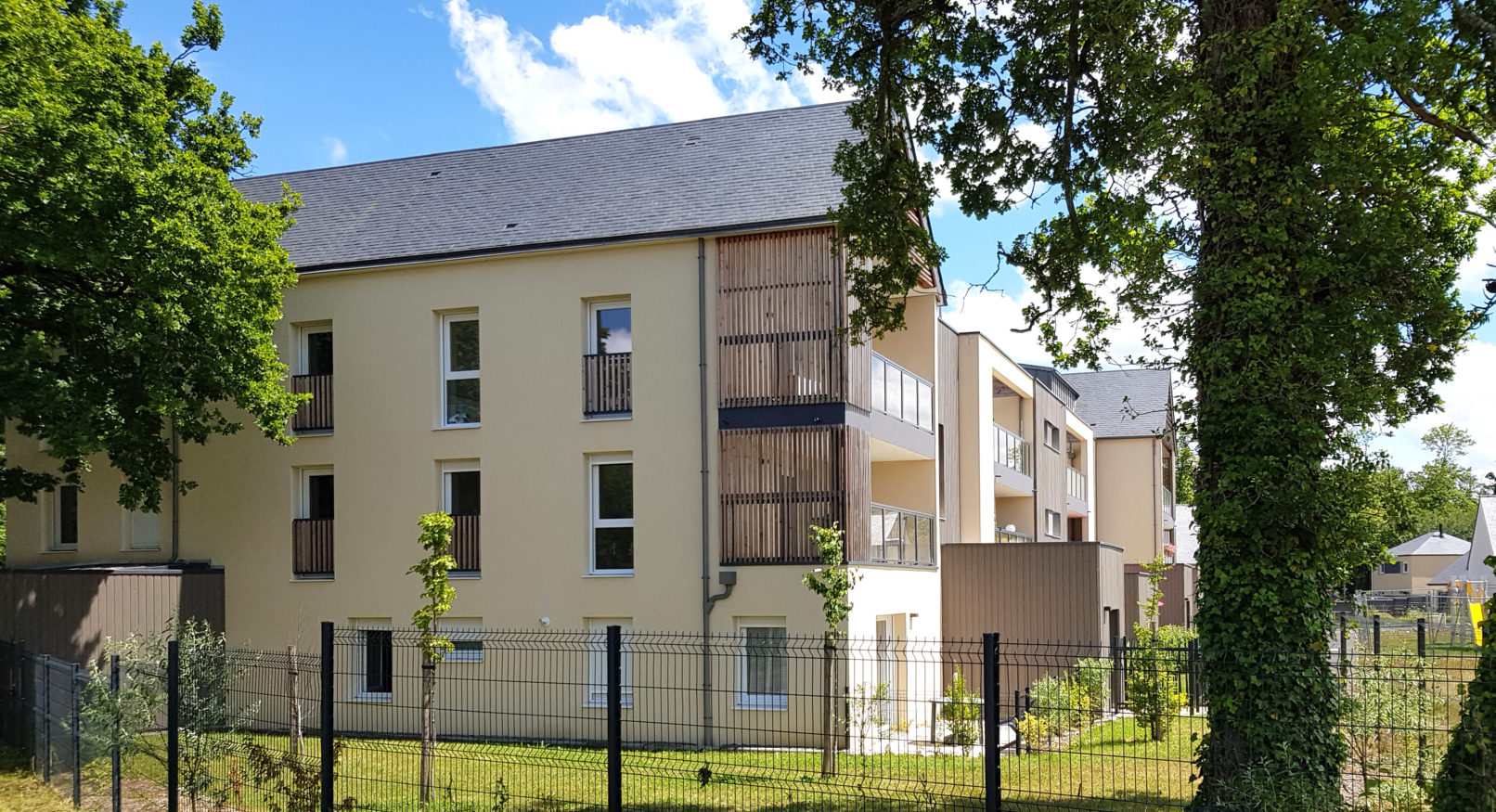 Tous les logements profitent d’un séjour orienté au sud et se prolongent sur des terrasses ou balcons. Des protections solaires aux formes diverses permettent d’assurer un confort d’été optimal.