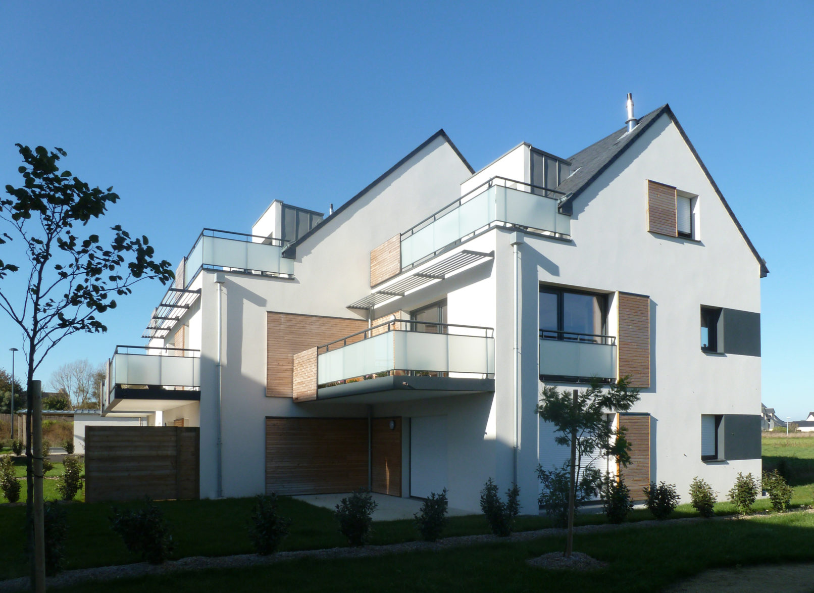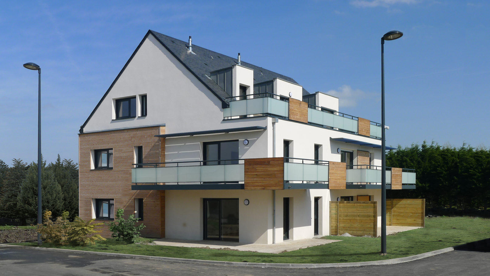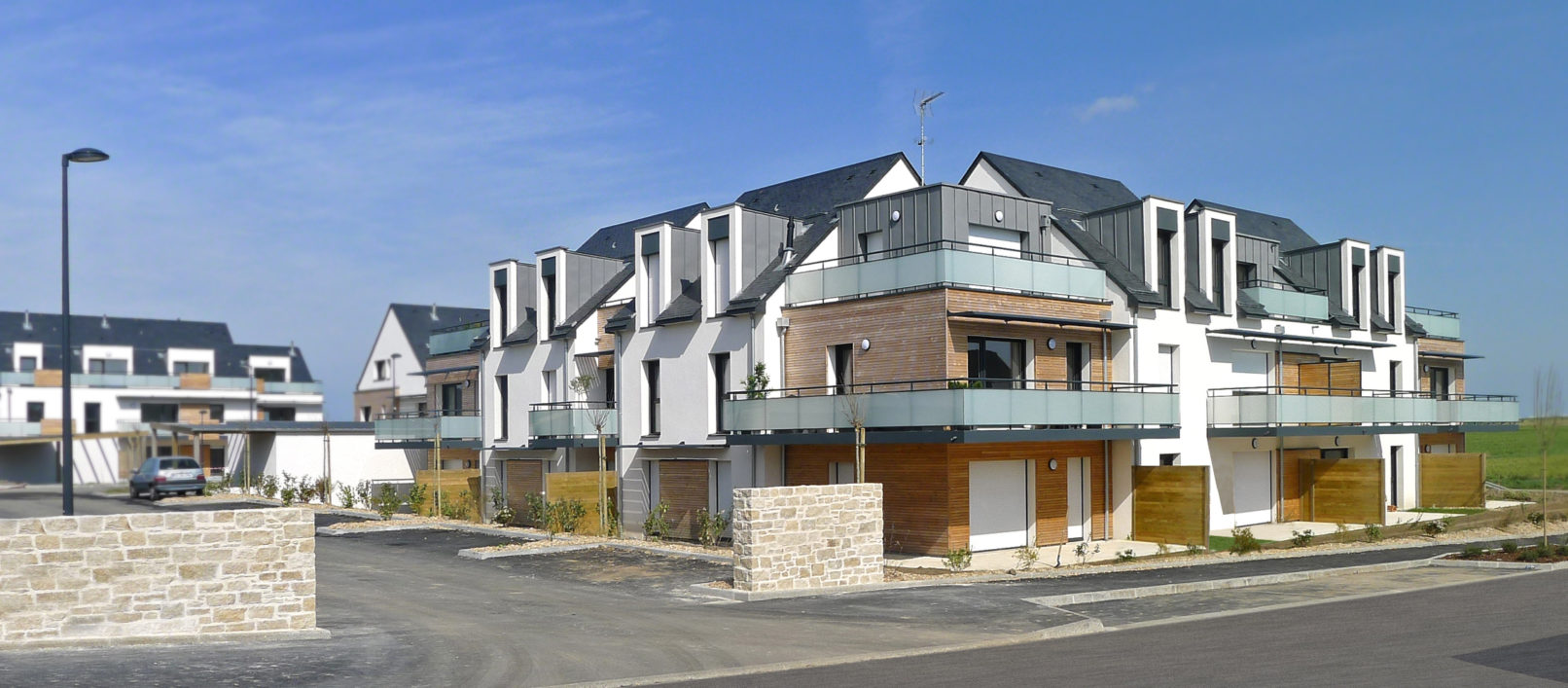 Il s’agit d’un ensemble de 6 maisons en bande, de 2 bâtiments intermédiaires regroupant 8 logements chacun et d’un troisième ensemble de 16 logements collectifs en forme de L marquant l’entrée de la résidence.