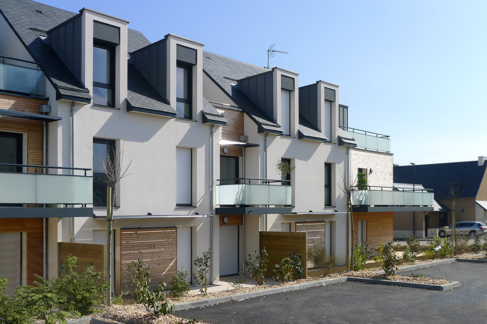 Les maisons groupées sont implantées le long de la rue du Bignon, en partie haute du terrain, tandis que les bâtiments collectifs plus élevés se trouvent en son point le plus bas ce qui minimise leur impact visuel.